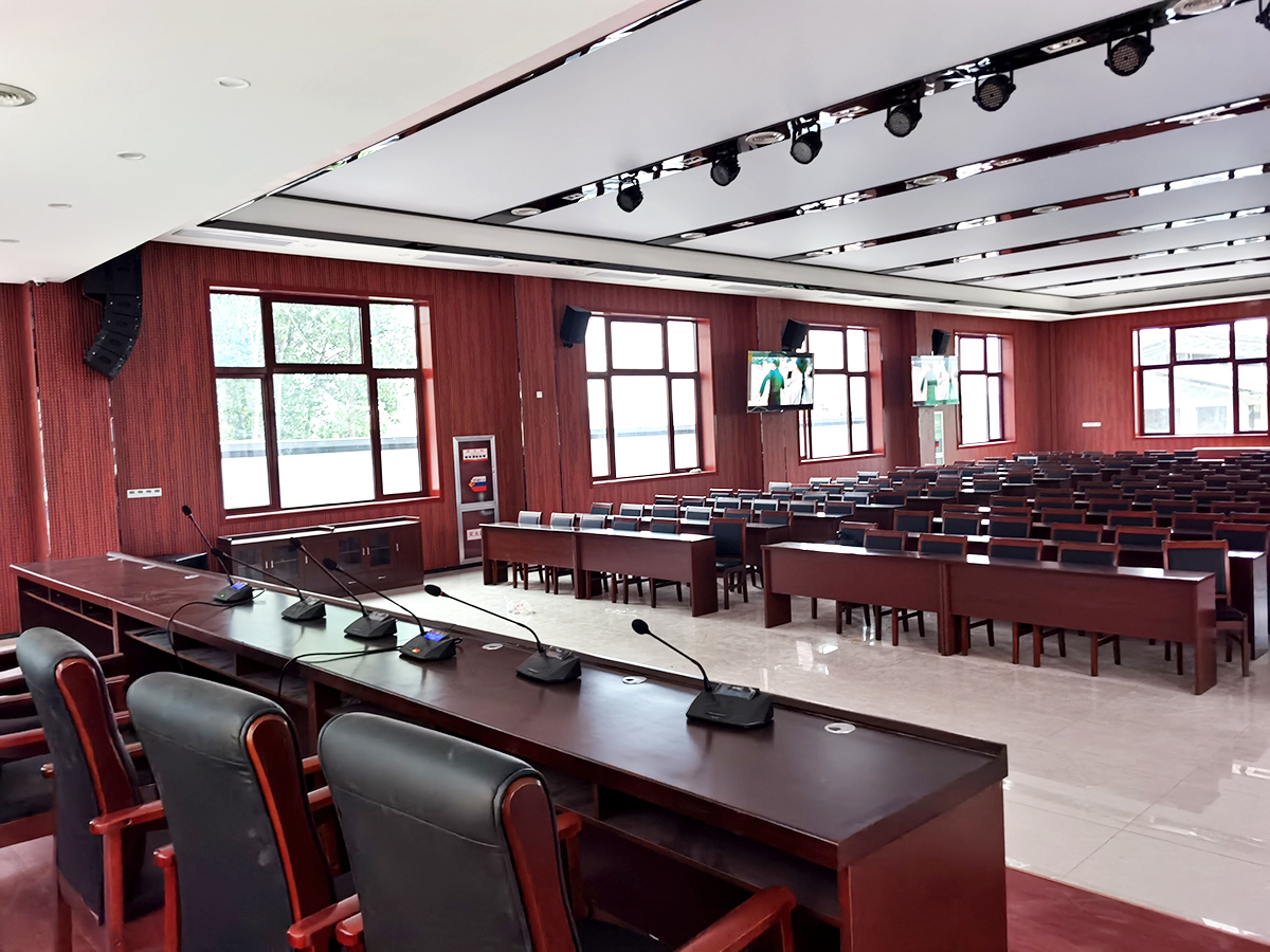 #1 京邦電子(KING-BANG)為安徽天長市龍崗黨校設(shè)計(jì)智能會(huì)議系統(tǒng),鑒于該項(xiàng)目場景有教室、教育科研單位的培訓(xùn)、會(huì)議、學(xué)術(shù)報(bào)告、多功能廳等,我們在設(shè)計(jì)之初把這些會(huì)議室進(jìn)行了檔次的劃分。有線手拉手系統(tǒng),將所有話筒進(jìn)行串聯(lián),進(jìn)入主機(jī)很方便,屬于固定桌面安裝。