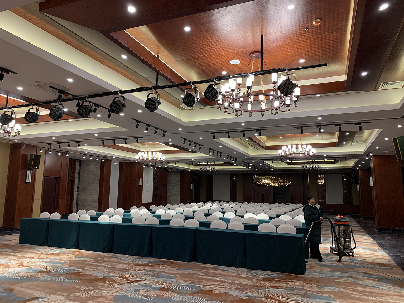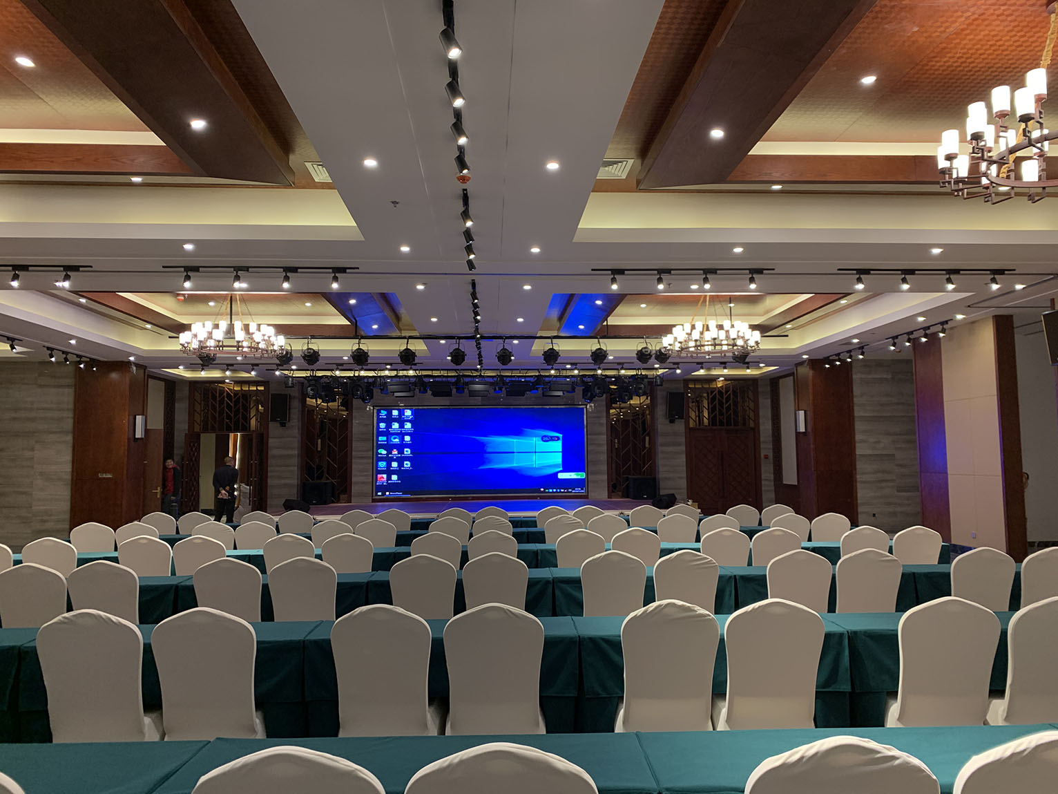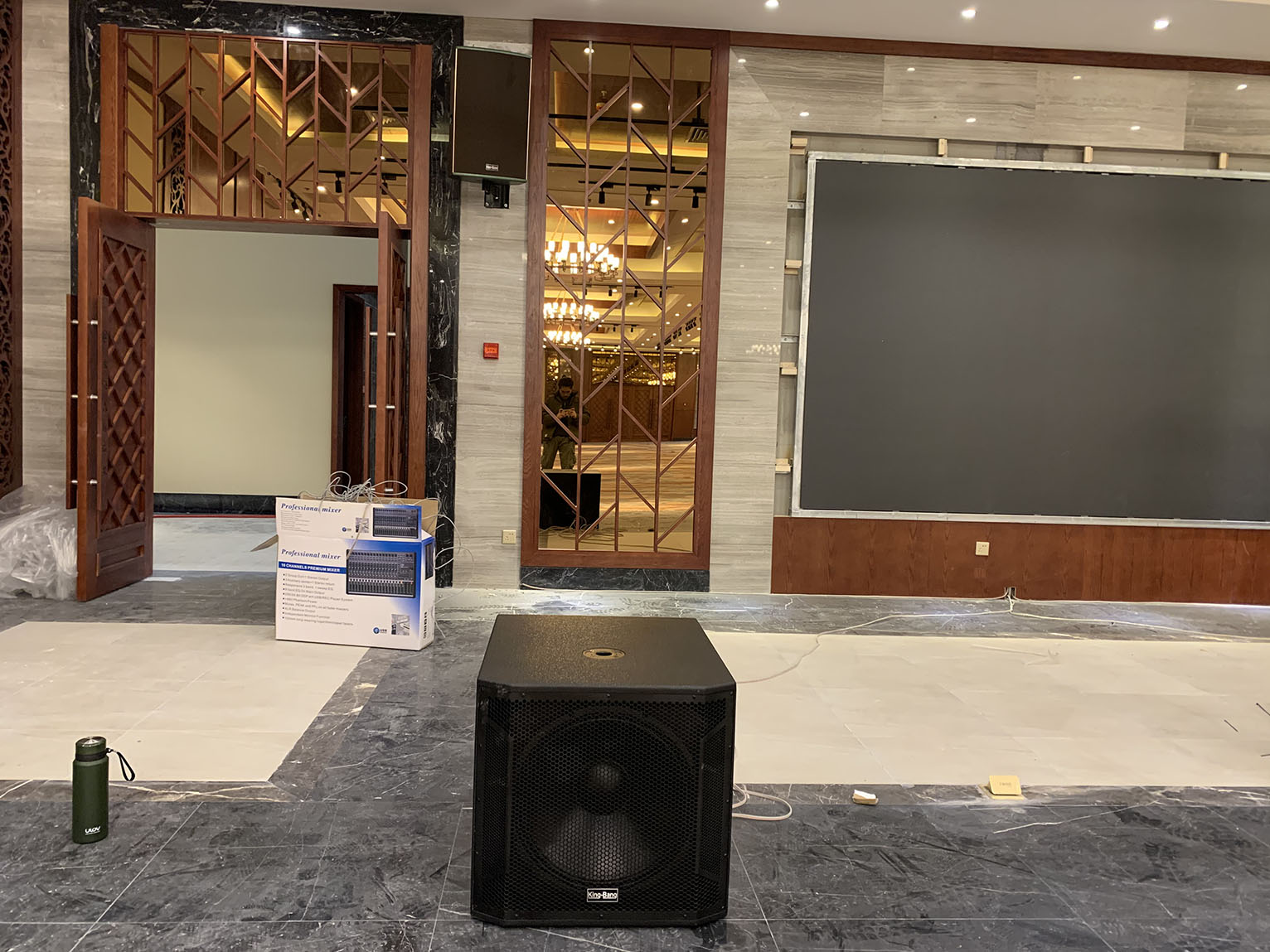 專業(yè)擴(kuò)聲系統(tǒng)中運(yùn)用了專業(yè)功放PA系列,以及周邊設(shè)備,宴會(huì)廳中的音響采用KB系列以吊掛形式均勻固定安裝在宴會(huì)廳內(nèi)的左右兩側(cè)墻體上作現(xiàn)場(chǎng)輔助補(bǔ)聲音箱。該款音箱定向?yàn)楸銛y式/固定安裝打造,音質(zhì)達(dá)到高保真級(jí),高抗壓性,可持續(xù)穩(wěn)定動(dòng)作。完全能滿足多功能會(huì)議廳,宴會(huì)廳等專業(yè)室內(nèi)擴(kuò)聲使用。