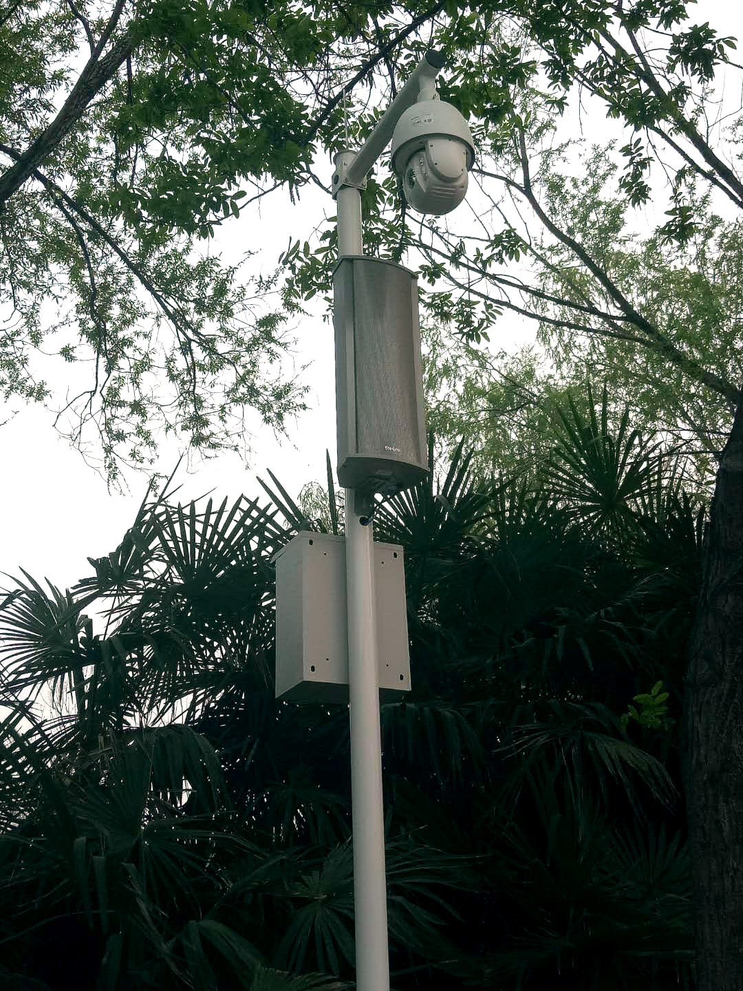 3、系統(tǒng)要求采用定壓傳輸方式。室外區(qū)域要求安裝高級室外防雨型音柱。