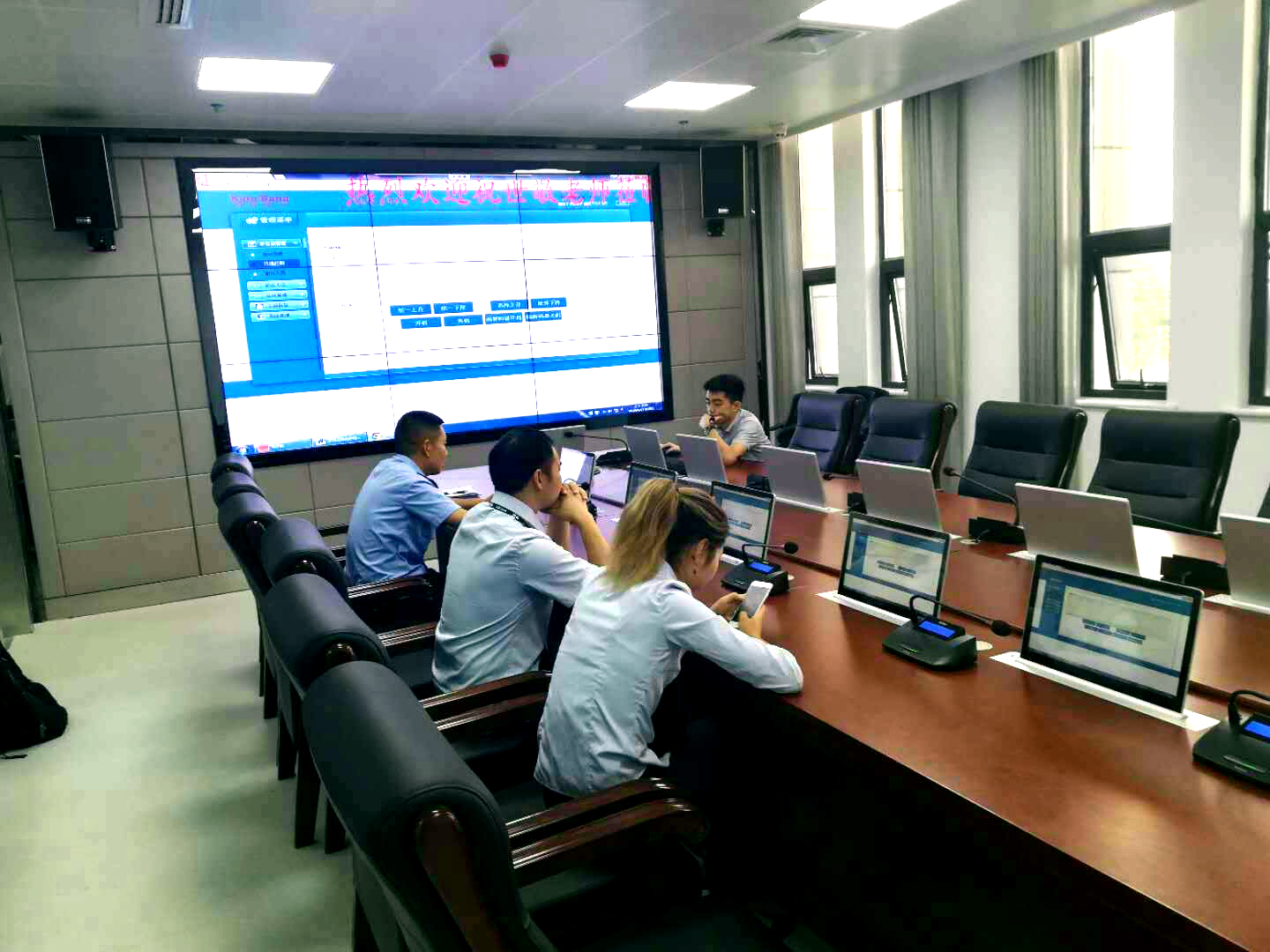 通過現(xiàn)場技術(shù)工程師安裝調(diào)試,反恐怖情報中心實現(xiàn)了系統(tǒng)一鍵開關(guān)機、高清信號互動切換、遠程音視頻切換、自動視像跟蹤、音量控制等等,實現(xiàn)了音視頻及控制方式全智能型,符合當(dāng)今智能會議控制系統(tǒng)的要求,也得到畢節(jié)市公安局各領(lǐng)導(dǎo)的高度認(rèn)可和好評。