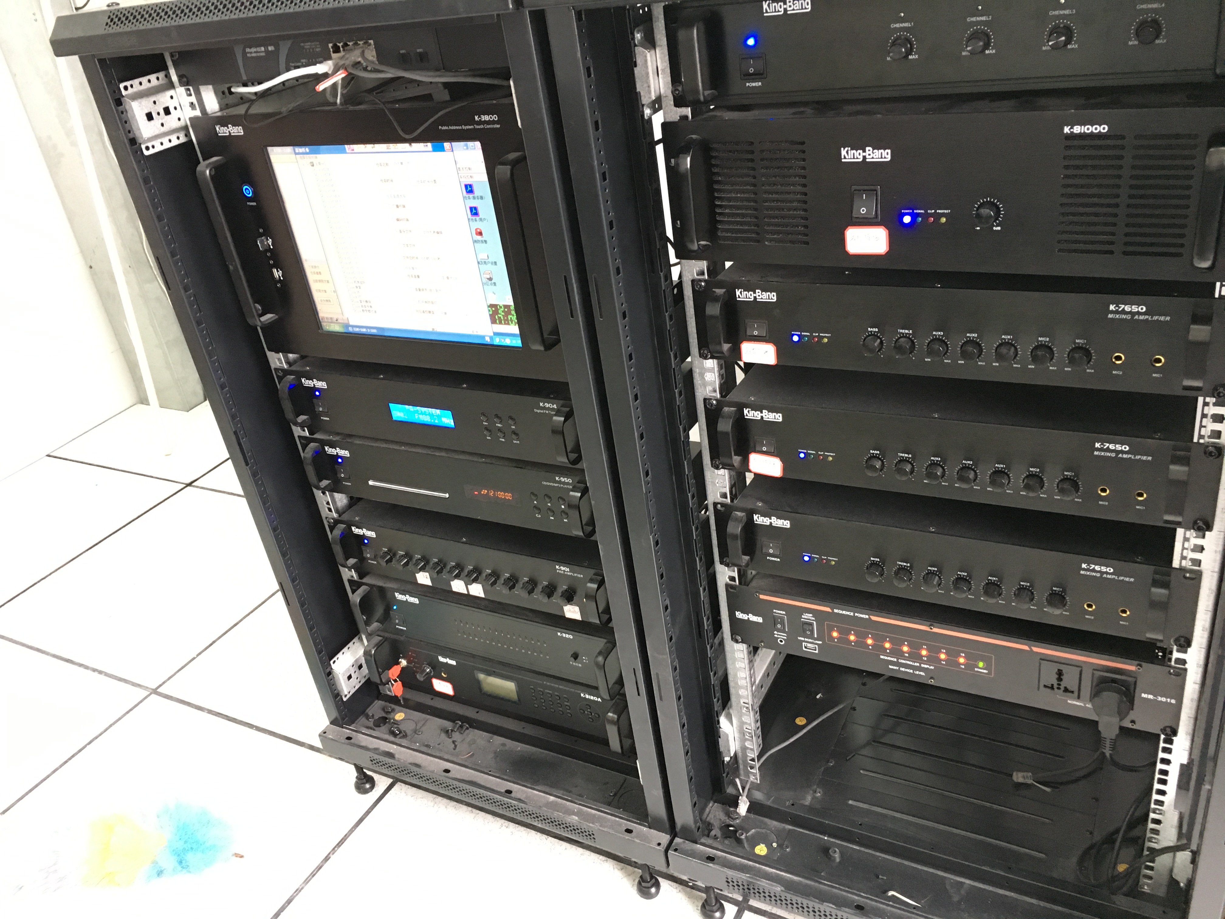 主控機房設(shè)備:在廣播控制室設(shè)置IP網(wǎng)絡(luò)廣播麥克風(S-609)、數(shù)字調(diào)諧器(K-904)、IP網(wǎng)絡(luò)音箱(K-316)、IP網(wǎng)絡(luò)消防報警主機(K-320)等設(shè)備。