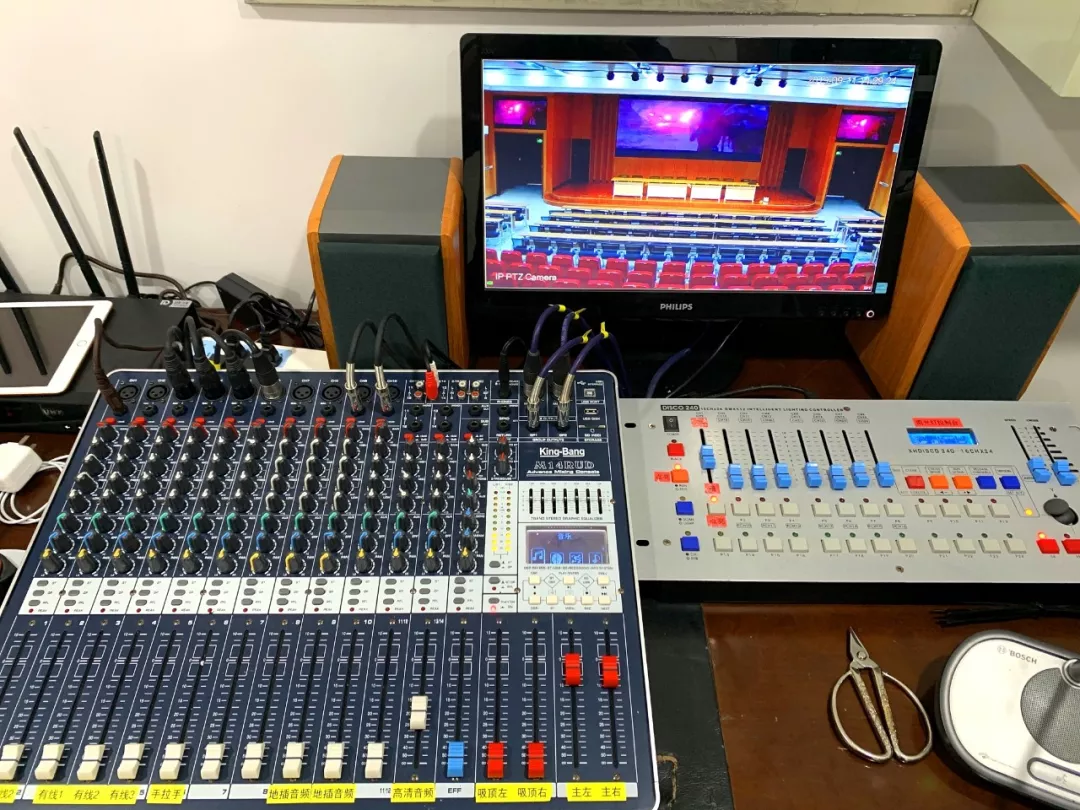 京邦電子(KING-BANG)通過對報告廳的布局環(huán)境分析,對音響設(shè)備進行合理的布置與連接,在此報告廳會議系統(tǒng)中可以利用擴聲系統(tǒng)提高聲源在聽眾席的聲壓級和清晰度的擴聲,通過電聲設(shè)計去控制和改善多功能報告廳的音質(zhì),達到了會議擴音系統(tǒng)的目的:提高響度和聲場分布的均勻度,改善報告廳的音質(zhì)和提高音響效果。通過對報告廳環(huán)境的分析,選出的音箱設(shè)備,并對音響設(shè)備布的布局作了精心的設(shè)計,因此這套會議系統(tǒng)除了滿足會議擴聲系統(tǒng)可以達到提高響度,聲場分布的均勻度,改善報告廳的音質(zhì)和提高音響效果目的外,還滿足了整個音響系統(tǒng)聲學指標設(shè)計的基本要求: