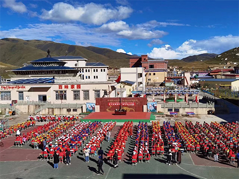 德格縣竹慶鎮(zhèn)中心小學(xué)始建于1978年,學(xué)校占地面積9112平方米,位于巍峨的雀兒山下,省道217旁,距離縣城147公里。竹慶鎮(zhèn)是四川省甘孜藏族自治州德格縣下轄的一個(gè)鎮(zhèn),位于德格縣境西北部,面積1079平方公里,常住人口約0.7萬。其前身為竹慶鄉(xiāng),1962年置竹箐鄉(xiāng),同年協(xié)慶鄉(xiāng)并入,1966年更名竹慶鄉(xiāng),同年改公社,1984年復(fù)鄉(xiāng)。柯(柯洛洞鄉(xiāng)) 三(三岔河)公路和馬(馬尼干戈)石(石渠縣)公路過境。2014年1月,撤鄉(xiāng)建鎮(zhèn),轄竹慶、扎東、更達(dá)、拉加、八色、檔木、協(xié)慶、擁青、更隆9個(gè)村委會(huì),屬純牧業(yè)鎮(zhèn),所在地海拔3980米,境內(nèi)有竹慶寺、協(xié)慶寺兩座著名寺廟。竹慶鎮(zhèn)中心小學(xué)現(xiàn)有教職員工 53人,其中專任教師48人,后勤人員5人。教學(xué)班17個(gè),共有學(xué)生840人。學(xué)校以“家”打造文化,培養(yǎng)師生以“愛家”做起,進(jìn)而升華至“愛國”思想,圖書室、電教室、實(shí)驗(yàn)室齊備,近年來,學(xué)校管理水平進(jìn)一步增強(qiáng),教育教學(xué)質(zhì)量逐年提升,是一所牧區(qū)雙語特色