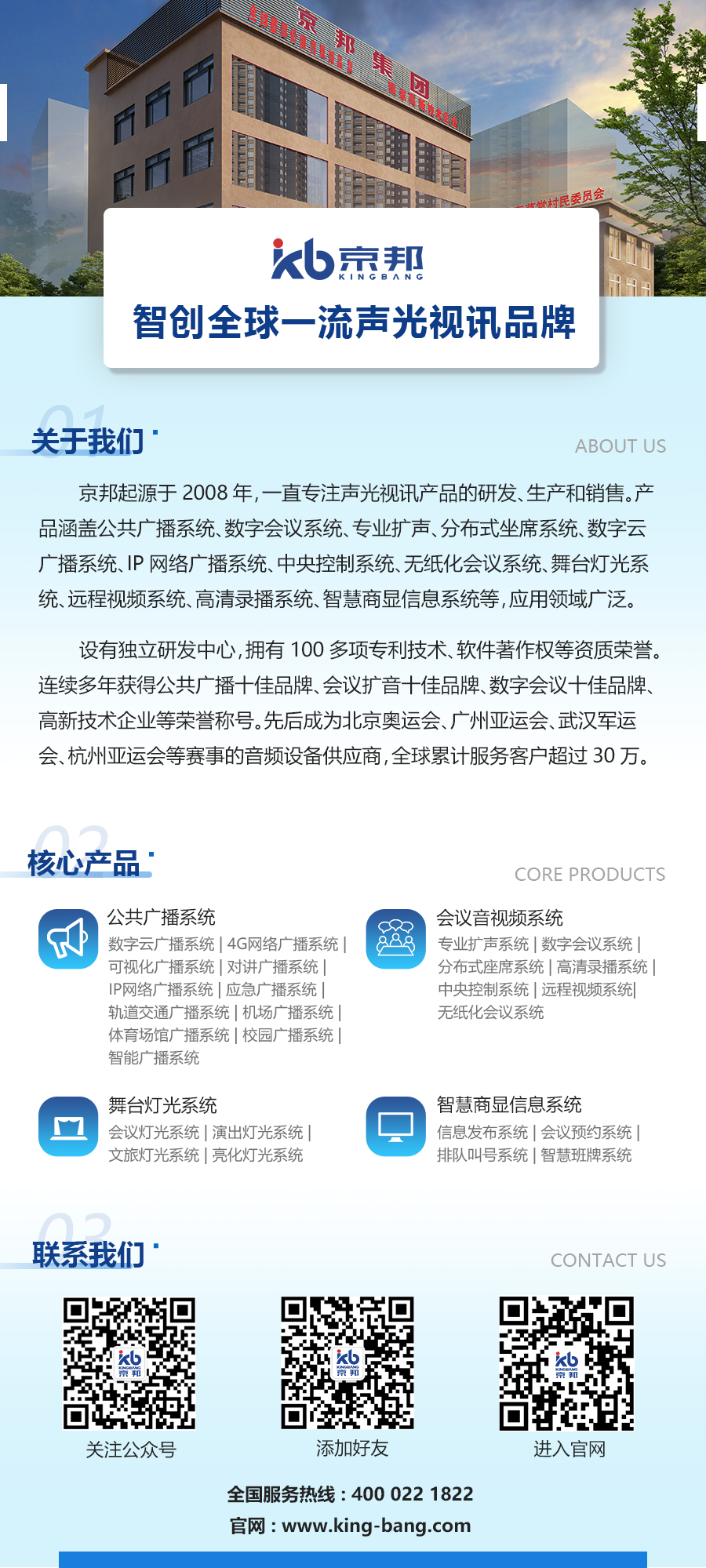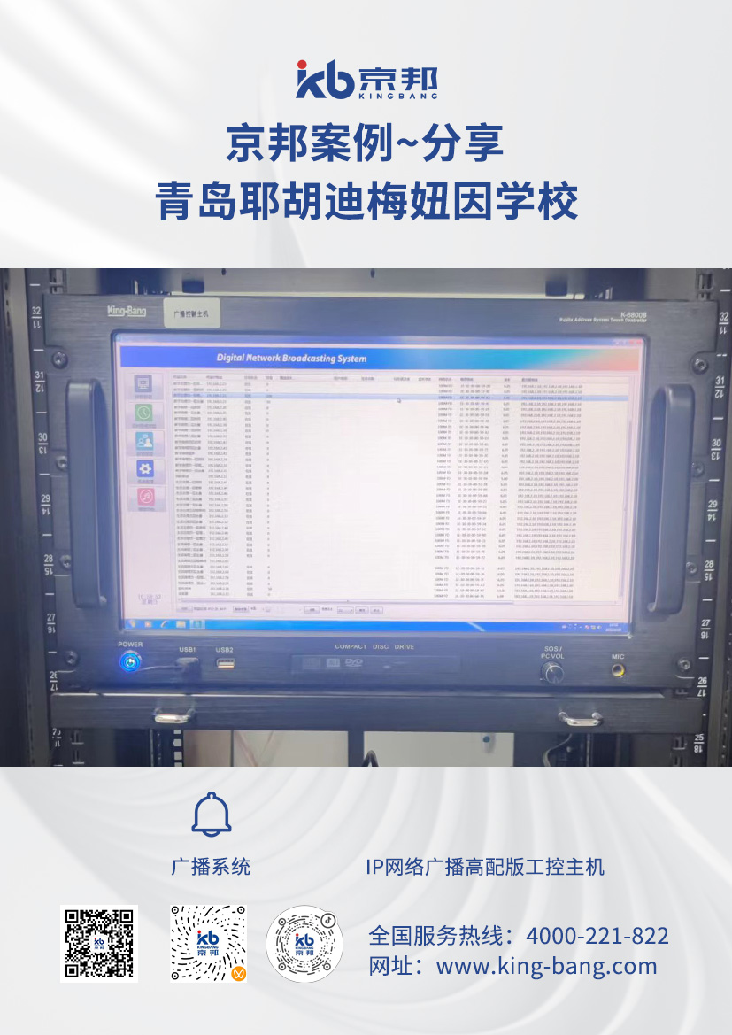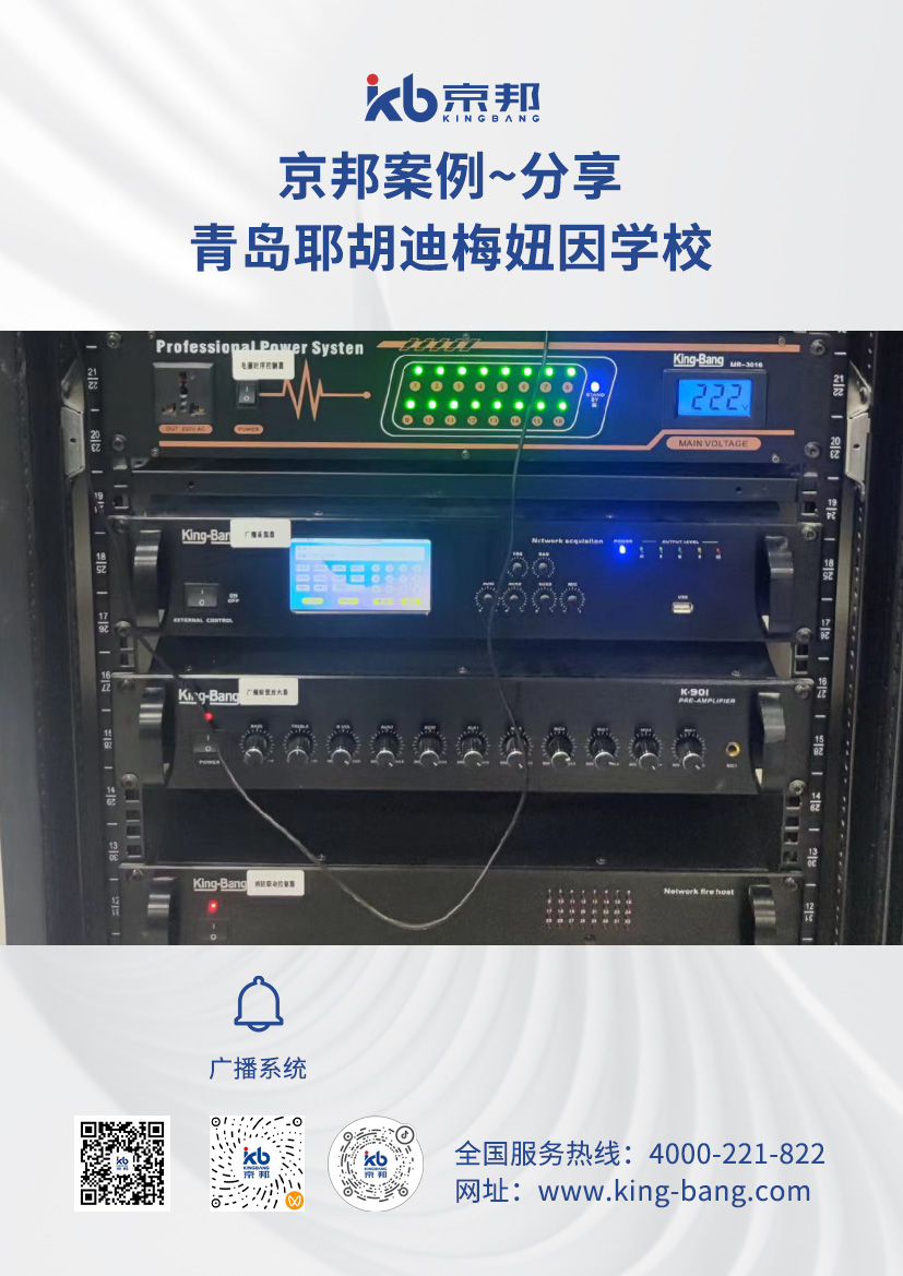 京邦校園廣播系統(tǒng) KING-BANG(京邦)廣播系統(tǒng)成功進駐青島耶胡迪梅紐因?qū)W校。廣播系統(tǒng)主要用于各種校園公共場合,如上下課定時打鈴、舉行全校的活動、通知、平日英語聽力教學以及英語考試的廣播、課間操、播送課間音樂、召開全校大會等。安裝方便以及布線美觀,符合現(xiàn)代學校的對于設(shè)備先進性的要求以及實用性、對后續(xù)的擴展性,廣播尋呼方便,根據(jù)不同的時間在不同的區(qū)域播放不同的背景音樂,尋呼廣播,互不影響,操作簡單方便。