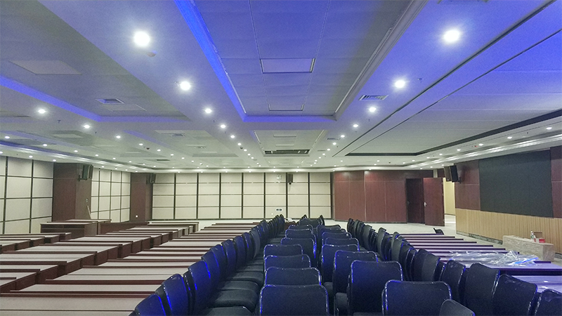專業(yè)擴聲系統(tǒng)簡單來說就是把聲音信號放大,主要由聲源、音頻處理設(shè)備、功放及揚聲器系統(tǒng)組成。通過計算會議室的音響場地系數(shù)進行設(shè)計,保證會議室每個角落的聲場聽覺均勻,音響效果達到語言清晰、無失真、聲場分布均勻。