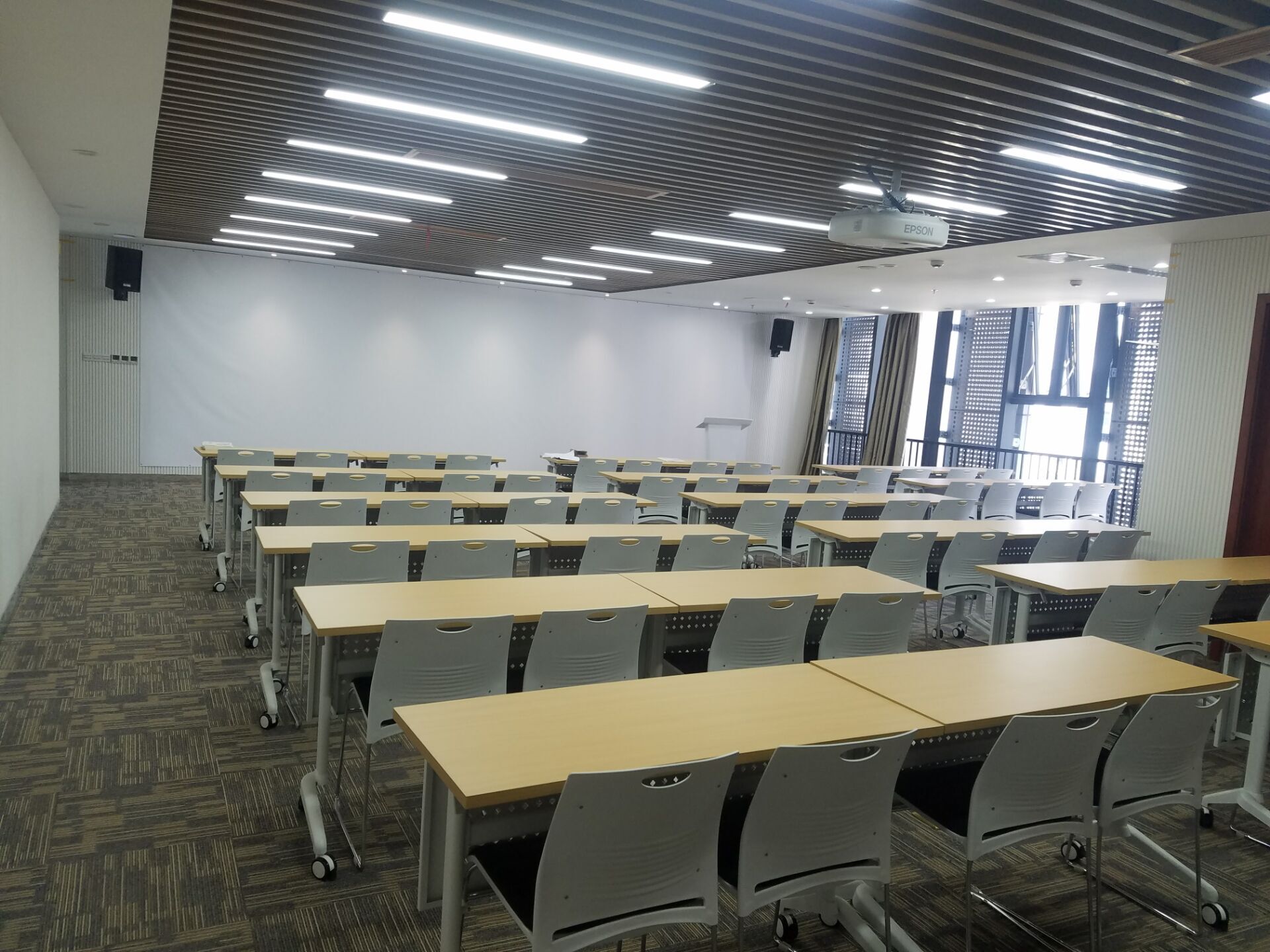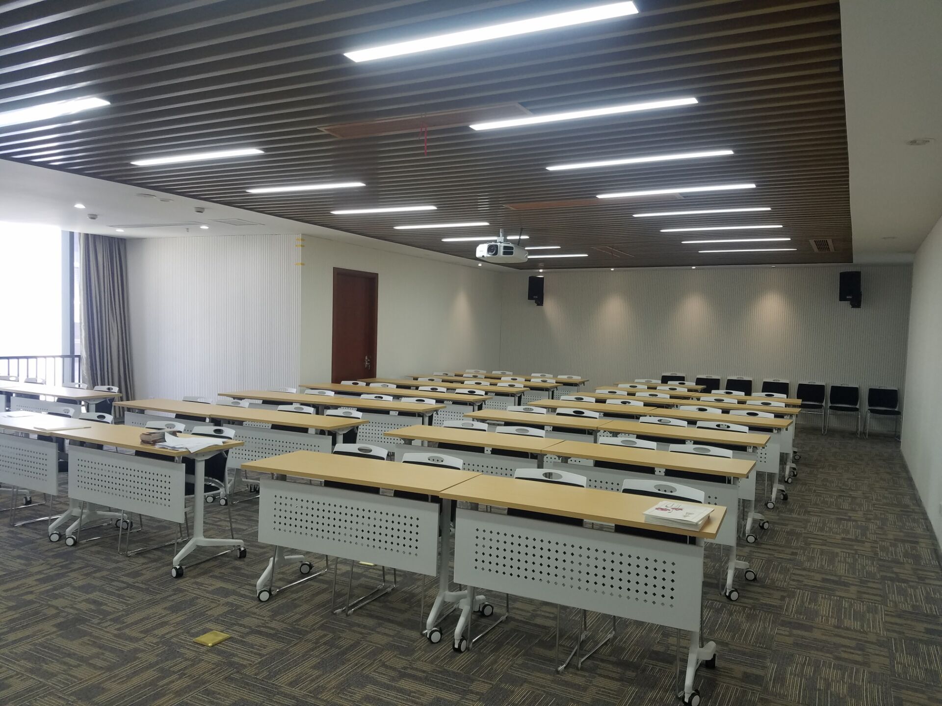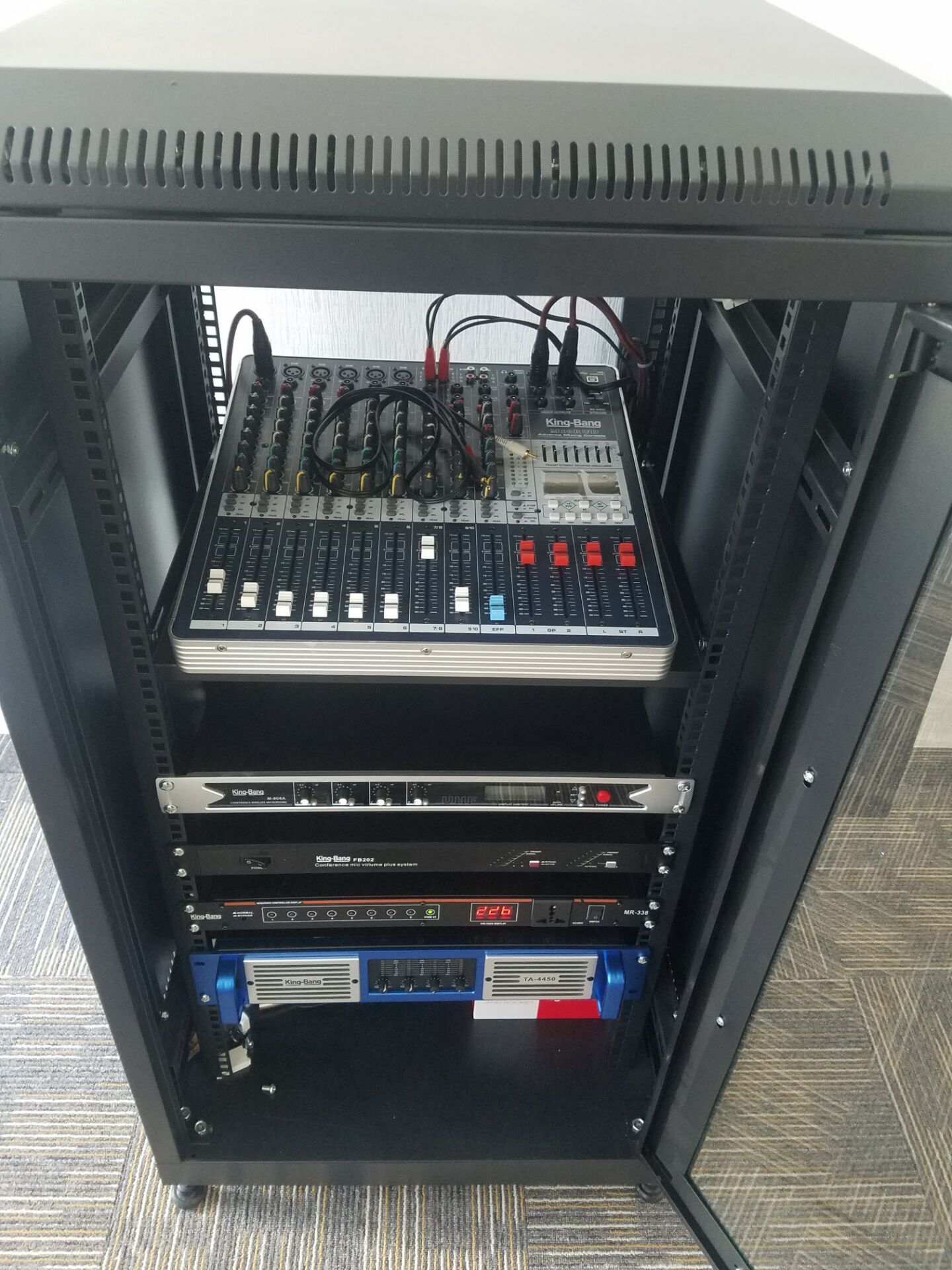 專業(yè)擴(kuò)聲系統(tǒng)簡單來說就是把聲音信號放大,主要由聲源、音頻處理設(shè)備、功放及揚聲器系統(tǒng)組成。通過計算會議室的音響場地系數(shù)進(jìn)行設(shè)計,保證會議室每個角落的聲場聽覺均勻,音響效果達(dá)到語言清晰、無失真、聲場分布均勻。