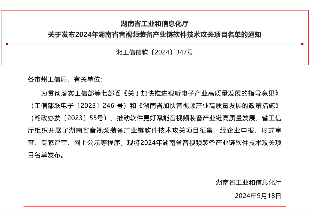 近日,省工信廳發(fā)布2024年音視頻裝備產(chǎn)業(yè)鏈軟件技術(shù)攻關(guān)項(xiàng)目名單,共23個(gè)攻關(guān)項(xiàng)目上榜,總投資超4.8億元。23個(gè)項(xiàng)目圍繞音視頻采集、制作、傳輸?shù)冗^(guò)程,通過(guò)軟件技術(shù)創(chuàng)新,賦能音視頻裝備產(chǎn)業(yè)鏈高質(zhì)量發(fā)展。